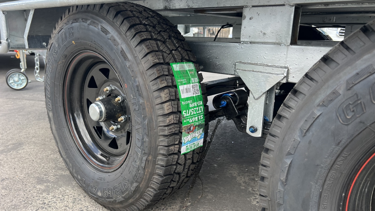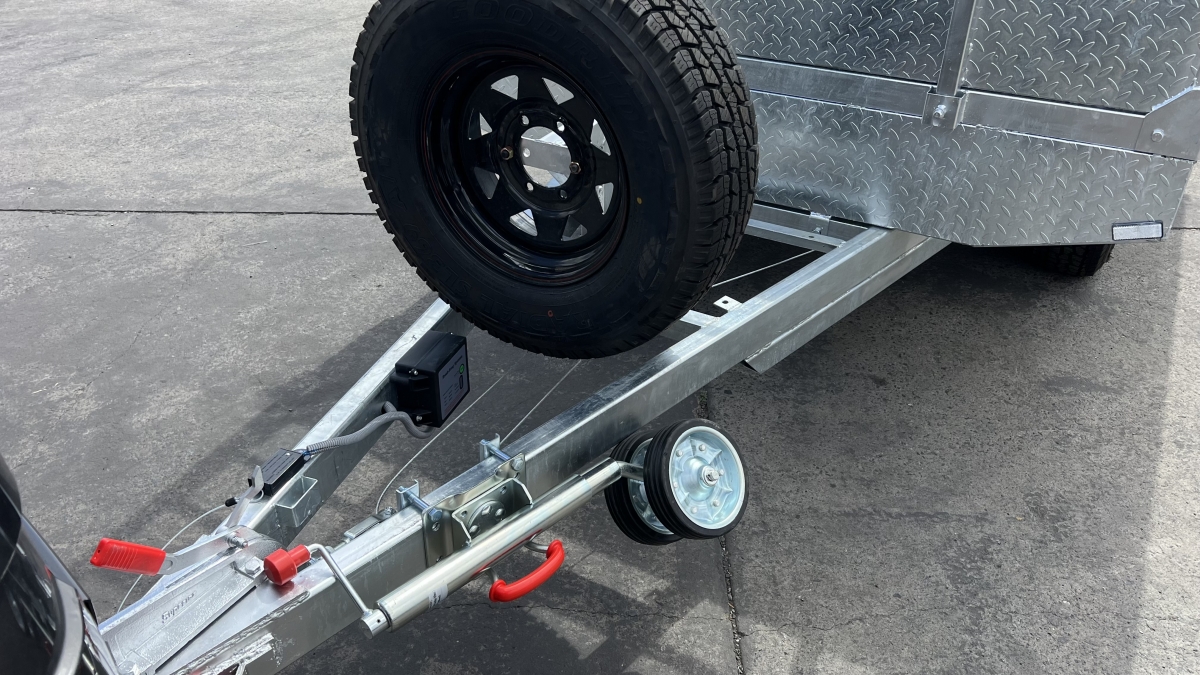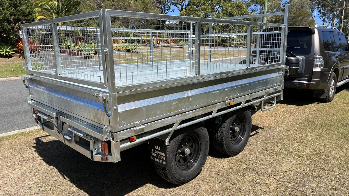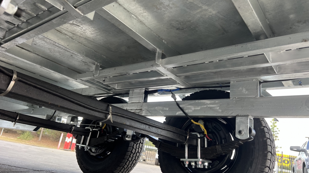 3.5t Gvm DECK SIZE 10'x 6' x300 mm Removable sides 600 Cage - 2 x 1800 Slide way Ramps-Galvanised -upright Spare Wheel - 100mm Structural chassis super strong and flexible-Under body extra bracing for trade use long lasting construction- 890kg tare - Fully Welded Heavy Duty Body and Chassis-Heavy Duty Japanese Sealed Dexter Bearings tested to 100 k klms - 2 x 63 mm solid axles Each Axle rated at 3.0t -Comes with 12inch Electric Brakes-Quality Breakaway Unit fitted- LED lights with Marker Lights on the sides. Tie Rails- 2000 mm Long Draw Bar -3.5t Coupling with handbrake - Rocker Roller Suspension with Heavy Duty 9 Leaf Springs - 225-70 R15lt black Sunraysia rims -10inch Heavy Duty Jockey Wheel