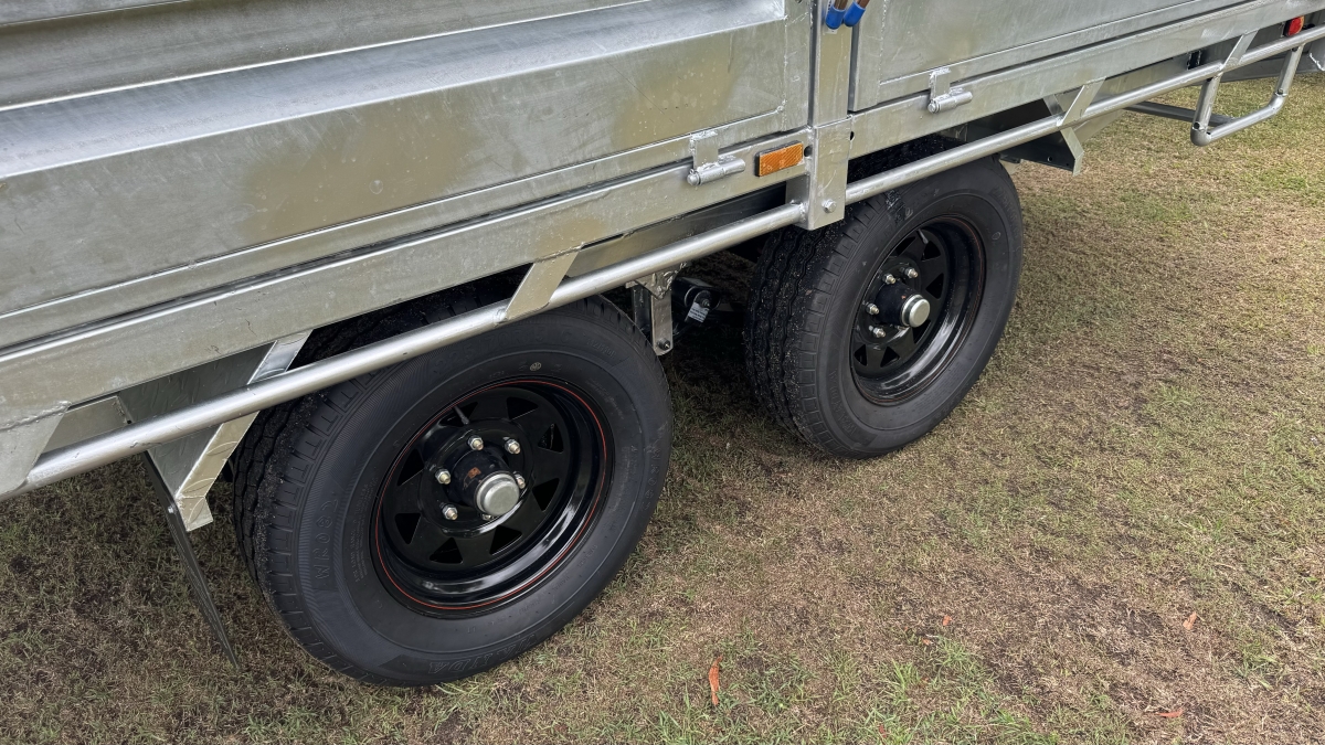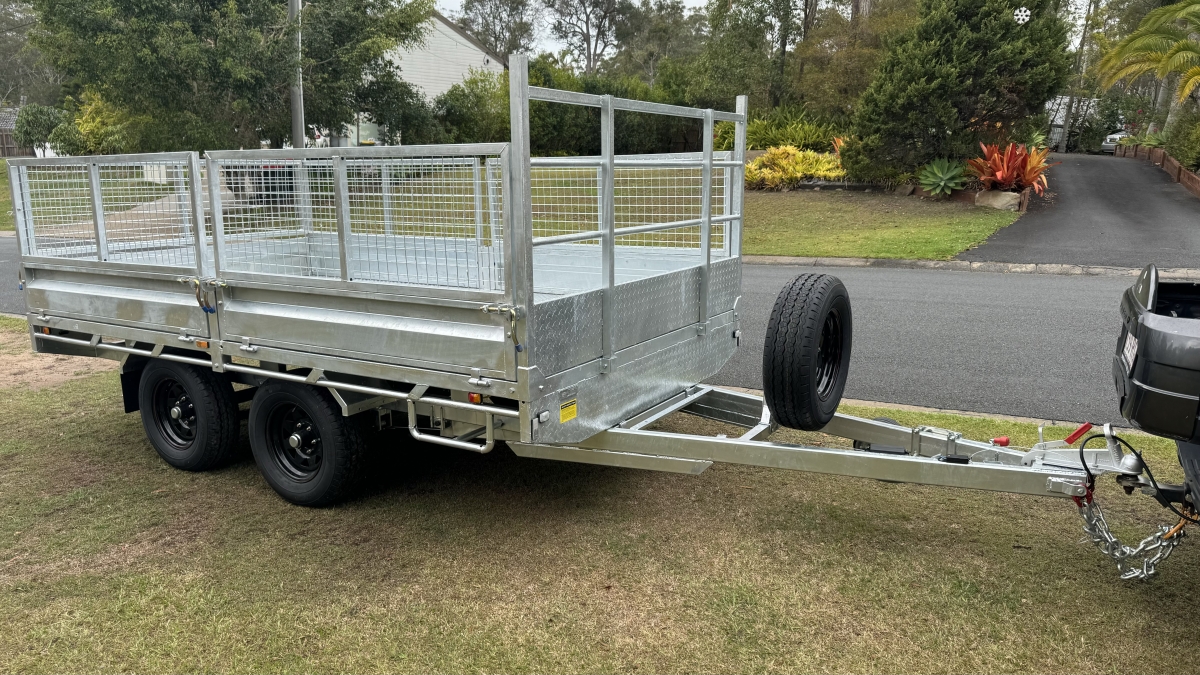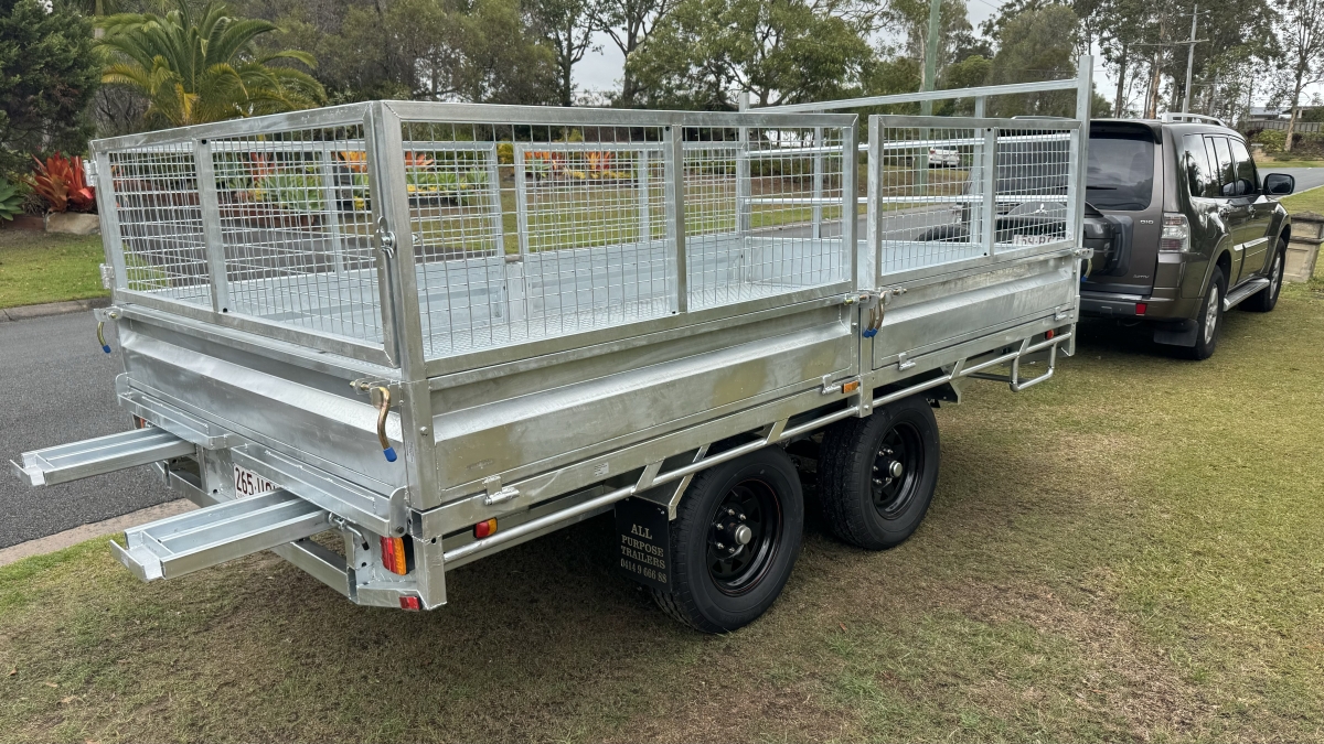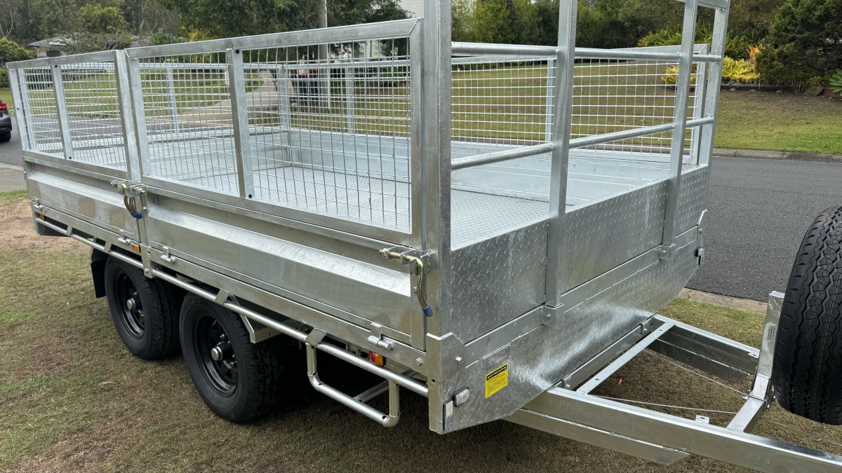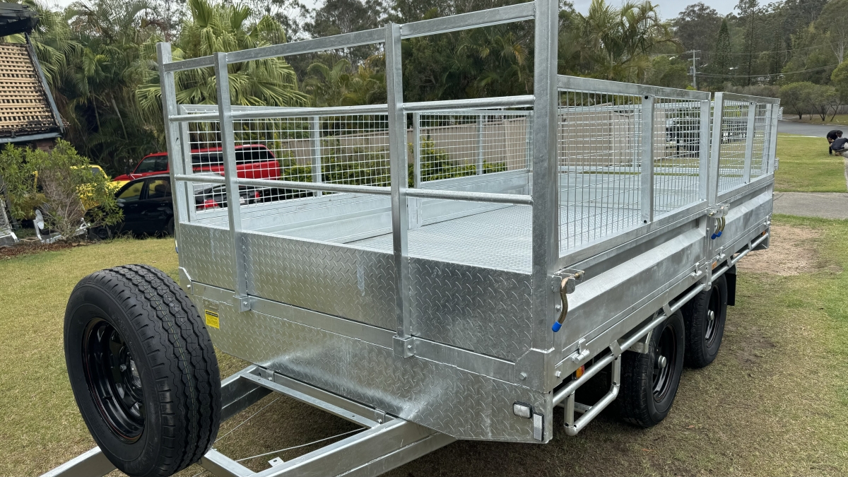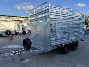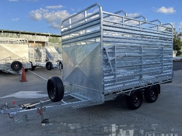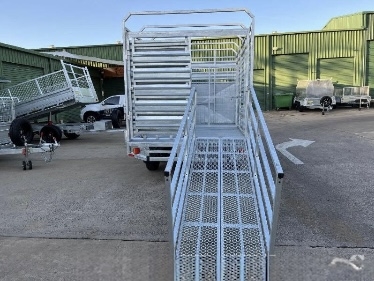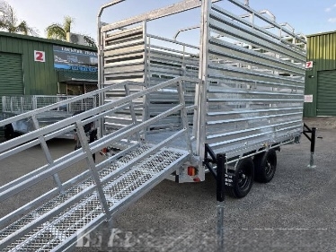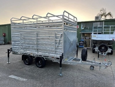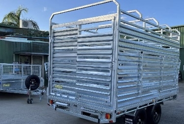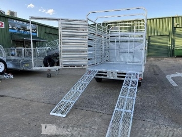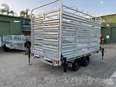 12FT X 7ft X 300 SIDES X 600 cage x 2150 CRATE REMOVABLE COMES WITH 4 X MOUNTABLE JACKS TO REMOVE CRATE -RAMPS AND RAILS - 2 X 63 MM SOLID SQUARE AXLES RATED TO 3.0T EACH -JAPANESE SEALED TESTED TO 100 K KLMS - 9 LEAF ROCKER ROLLER HEAVY DUTY SPRINGS - FULLY WELDED HEAVY DUTY BODY AND CHASSIS - FULL LENGTH SIDE STEPS - REAR SIDE GATE WITH FOLD UNLOADING RAMPS DETACHABLE RAILS - FULLY WELDED SIDE PANELS TO HANDLE LARGE COWS OR BULLS - 4 WHEEL 12" ELECTRIC BRAKES - QUALITY BREAKAWAY UNIT - LED LIGHTS WITH MARKER LIGHTS ON THE SIDES -CENTRE INTERNAL SEPARATION SWING GATE -FULL LENGTH TIE DOWN RAILS ALL AROUND