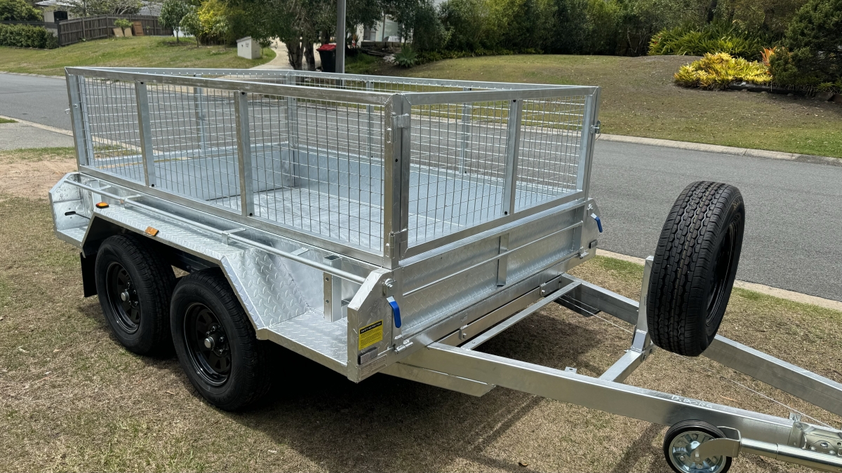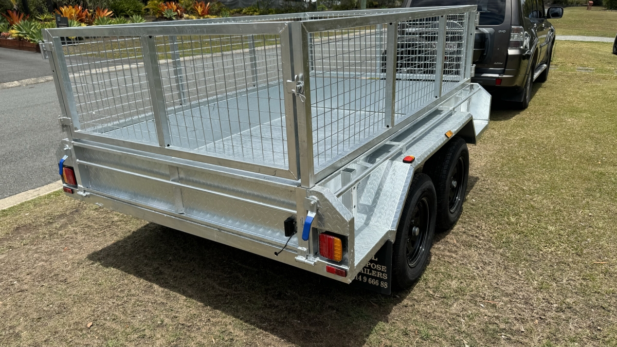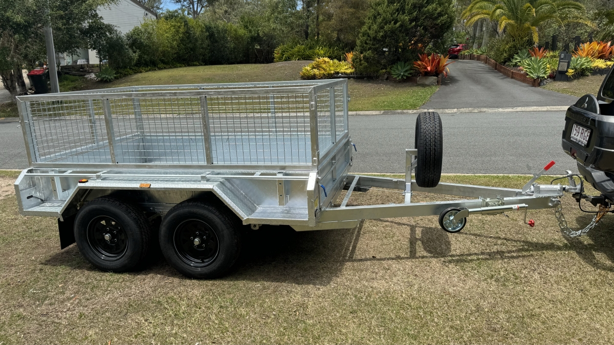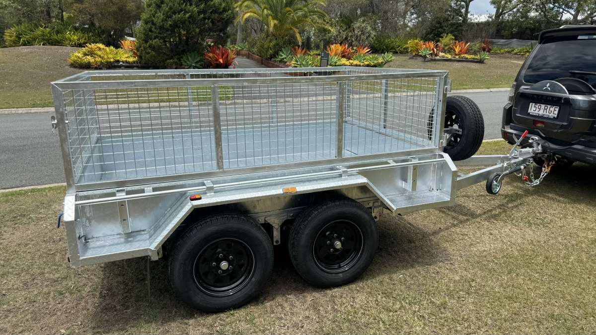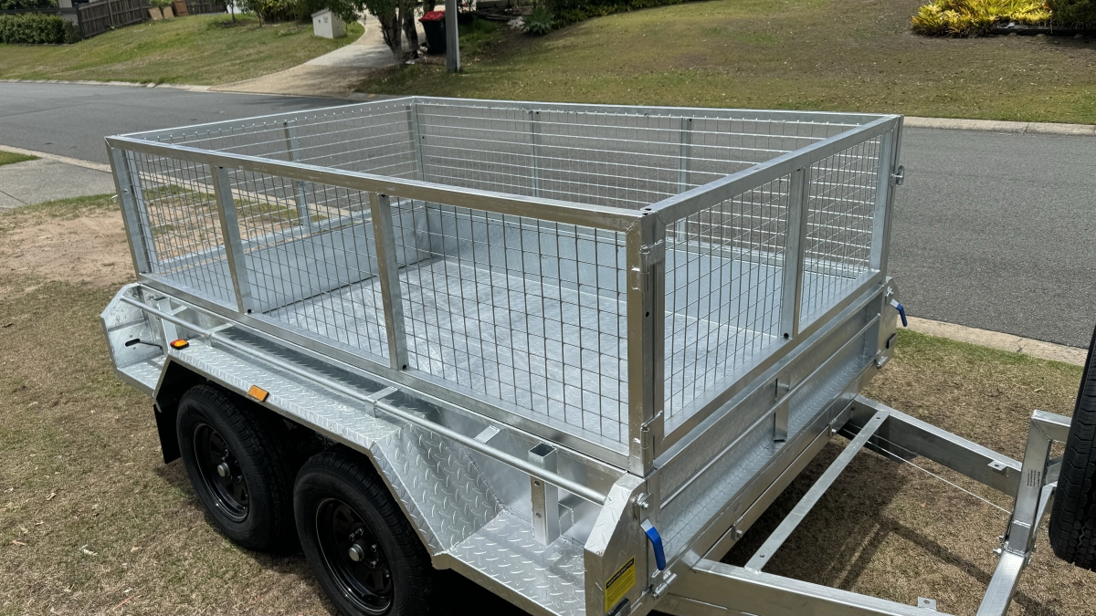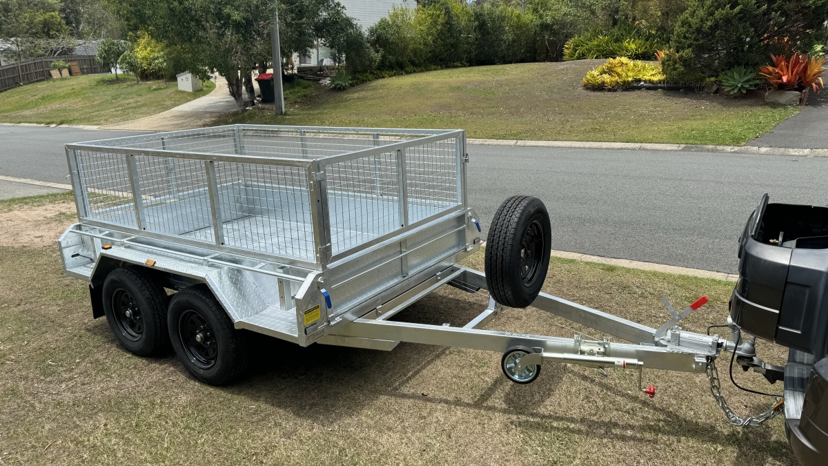Heavy duty Galvanised box trailer- 8' x 5' x 600 mm cage available in 900 cage for $100 more dual axle /2000 Gvm includes 8" jockey and new spare wheel /manual over rider disc brake to front Axle