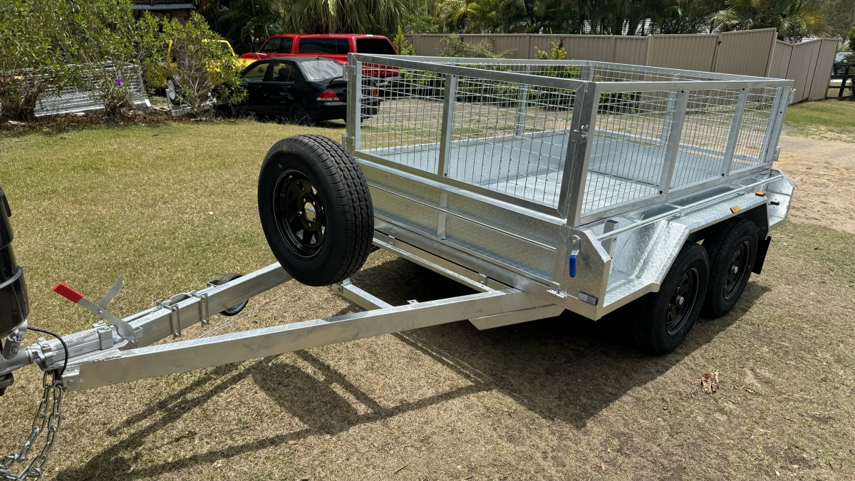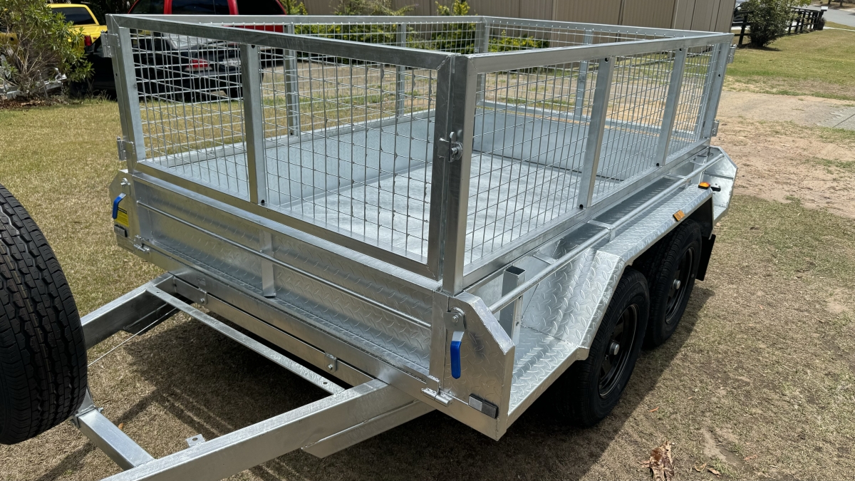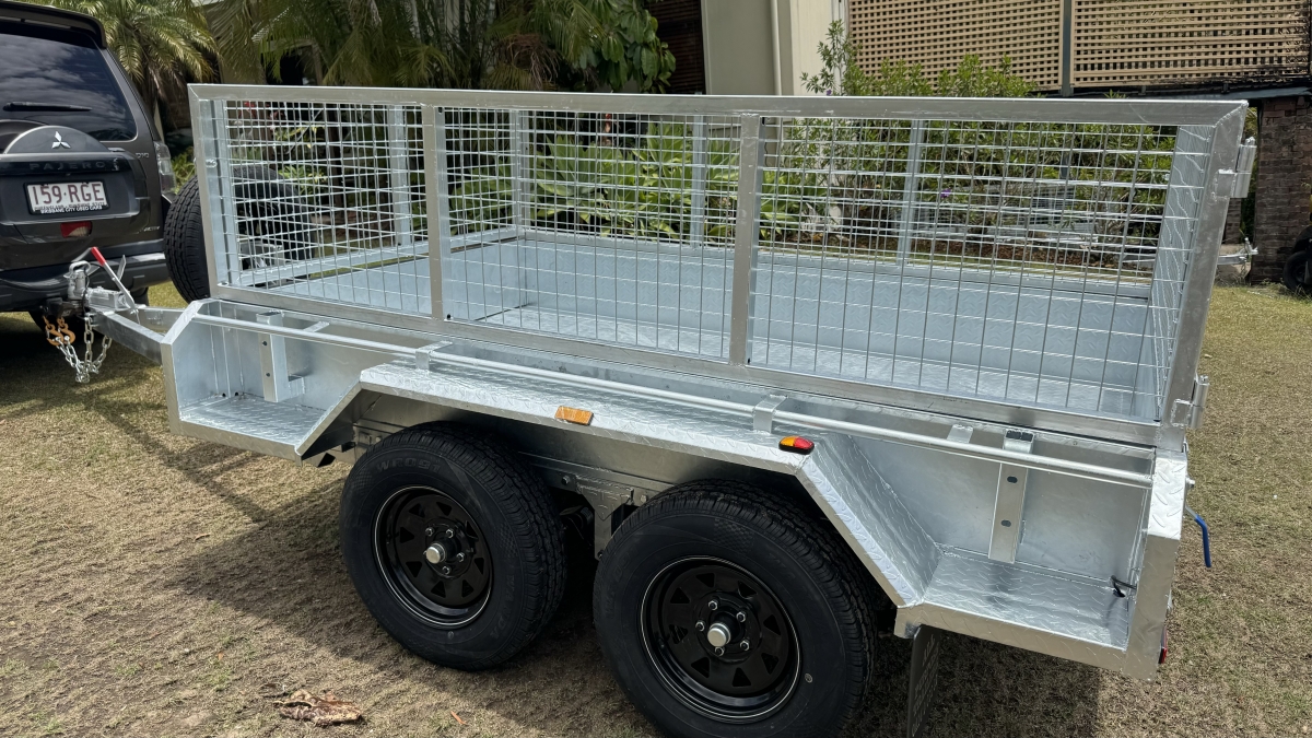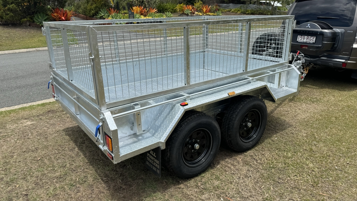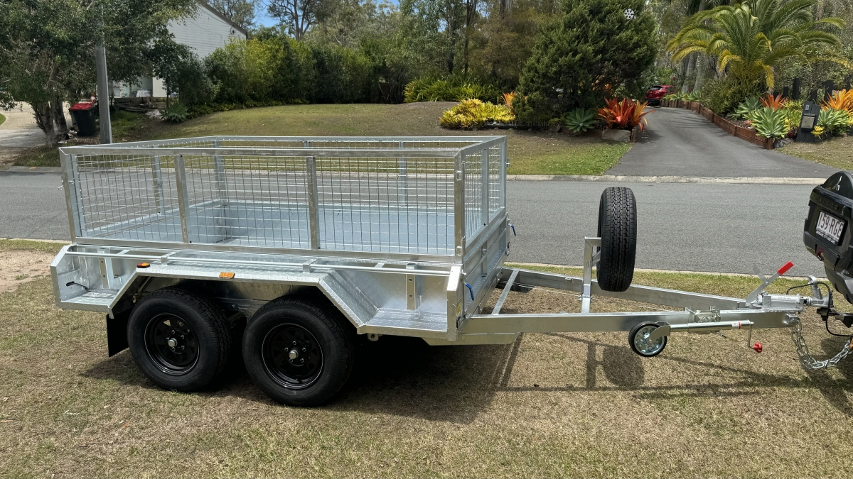 Heavy duty Galvanised box trailer- 8' x 5' x 600 mm cage available in 900 cage for $100 more dual axle /2000 Gvm includes 8" jockey and new spare wheel /manual over rider disc brake to front Axle