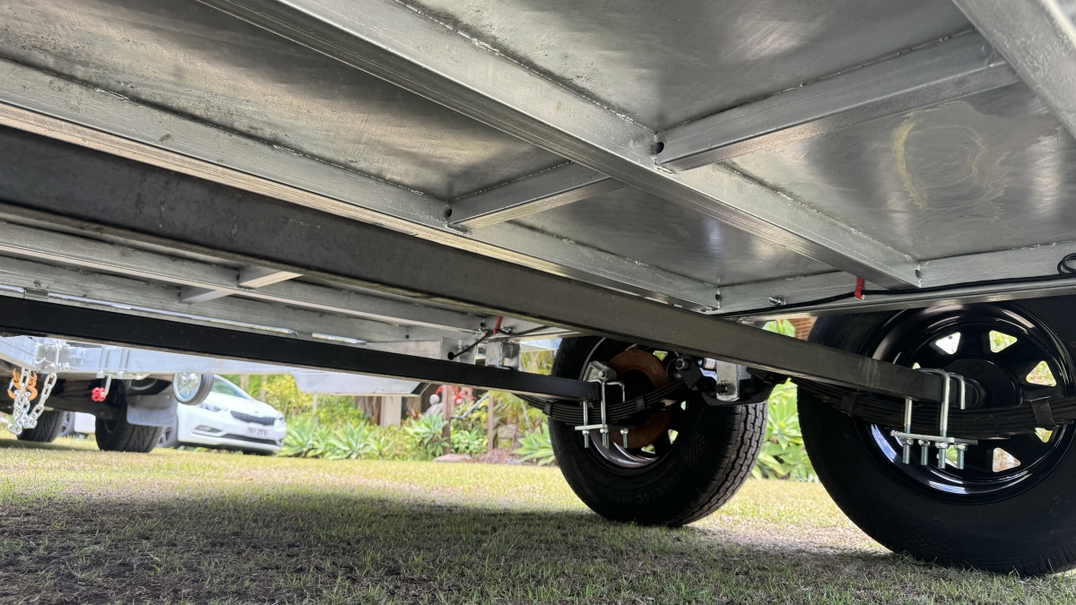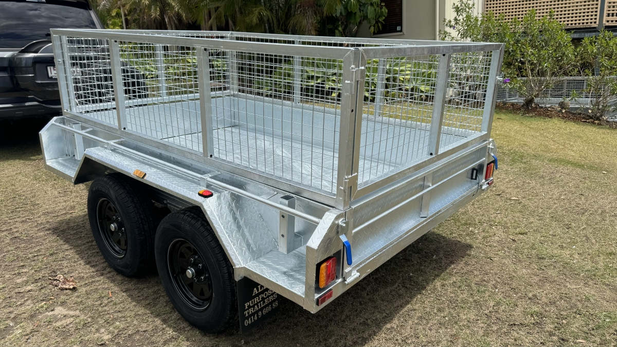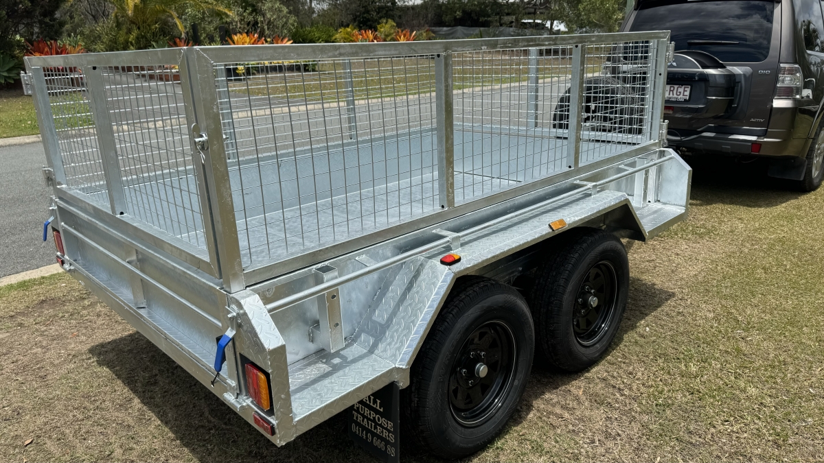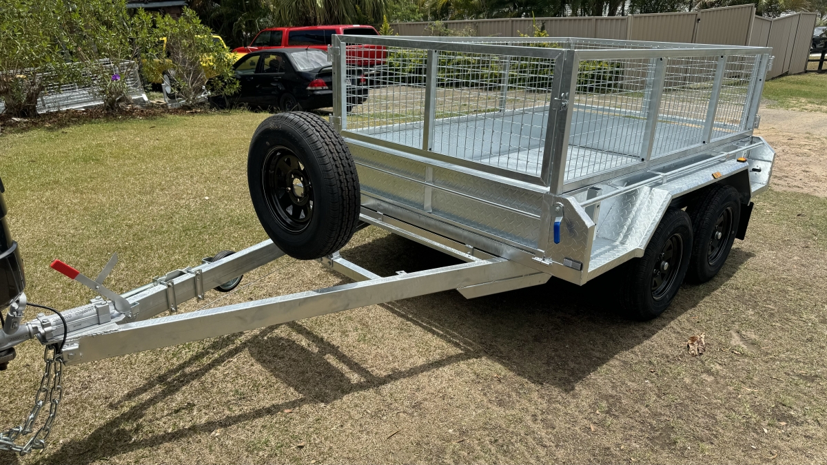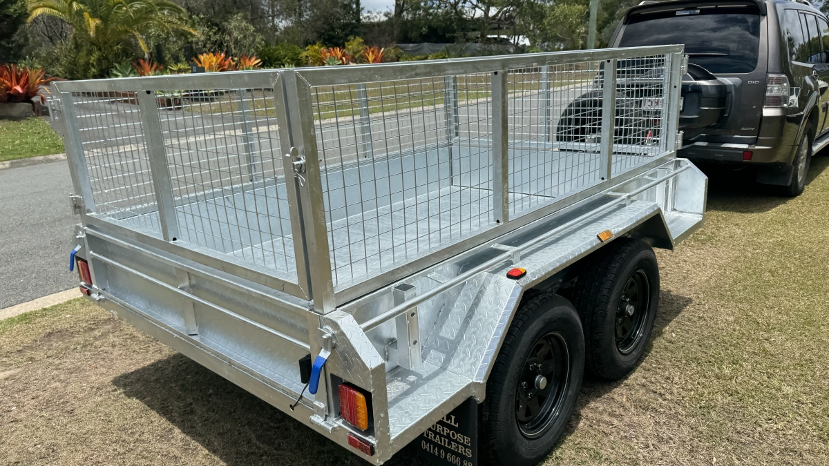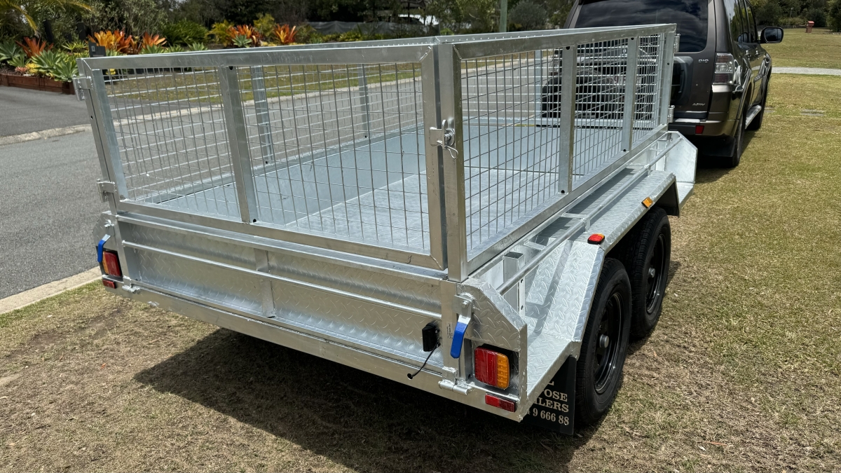 Heavy duty Galvanised box trailer- 8' x 5' x 600 mm cage available in 900 cage for $100 more dual axle /2000 Gvm includes 8" jockey and new spare wheel /manual over rider disc brake to front Axle